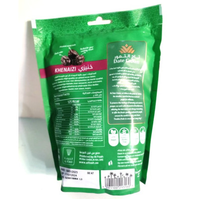 Khenaizi has a firmer, fleshy structure with a slightly longer pit. These highly prized Emirate black dates are sought after for their rich yet not too intense flavor due to their moderate level of sweetness. Khenaizi is the perfect choice for those who prefer a balanced sweetness in dates.