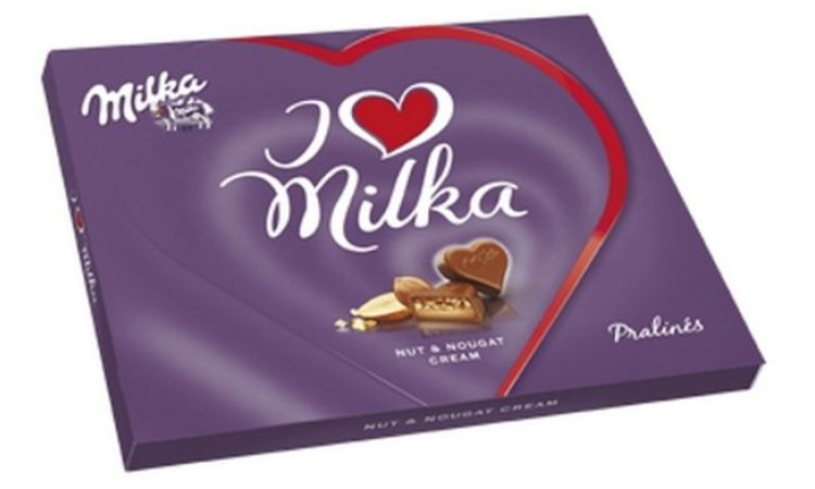 Milka I Love Milka Alpine Milk Chocolate Praline with hazelnuts and almond filling. In milk chocolate, the cocoa solids min. 30%.
